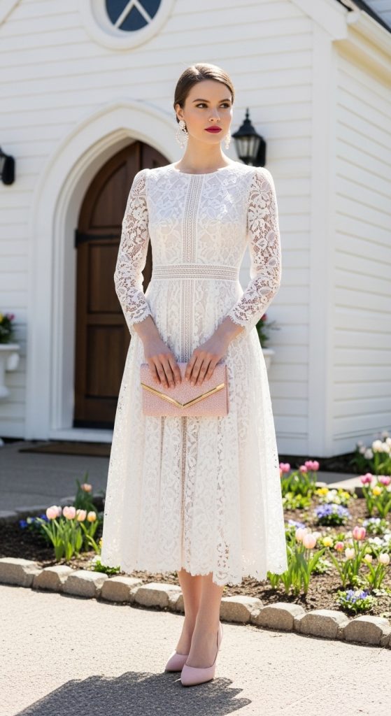 Nothing says spring elegance like white lace. A lace dress feels angelic, fresh, and perfectly suited for Easter. White symbolizes renewal, making it especially fitting.