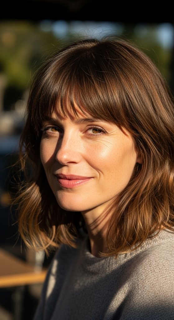 This Pinterest-style guide is designed to be practical, elegant, and beginner-friendly. Each bang hairstyle idea below is chosen specifically for women over 40 who want something modern yet timeless. These styles prioritize softness, movement, and versatility rather than sharp or overly dramatic cuts. They work beautifully with long hair, medium-length hair, and shorter styles, making them adaptable no matter your current haircut.