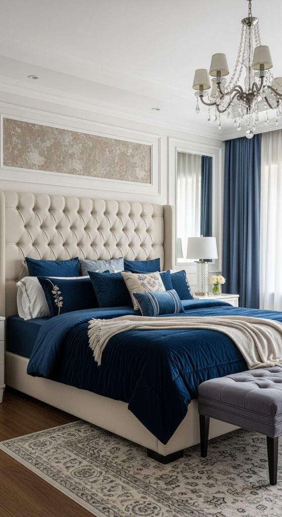 Luxury bedrooms combine elegance with comfort. Think upholstered headboards, plush bedding, statement lighting, and sophisticated wall treatments. High-quality materials like silk, velvet, or polished wood enhance the luxurious vibe.