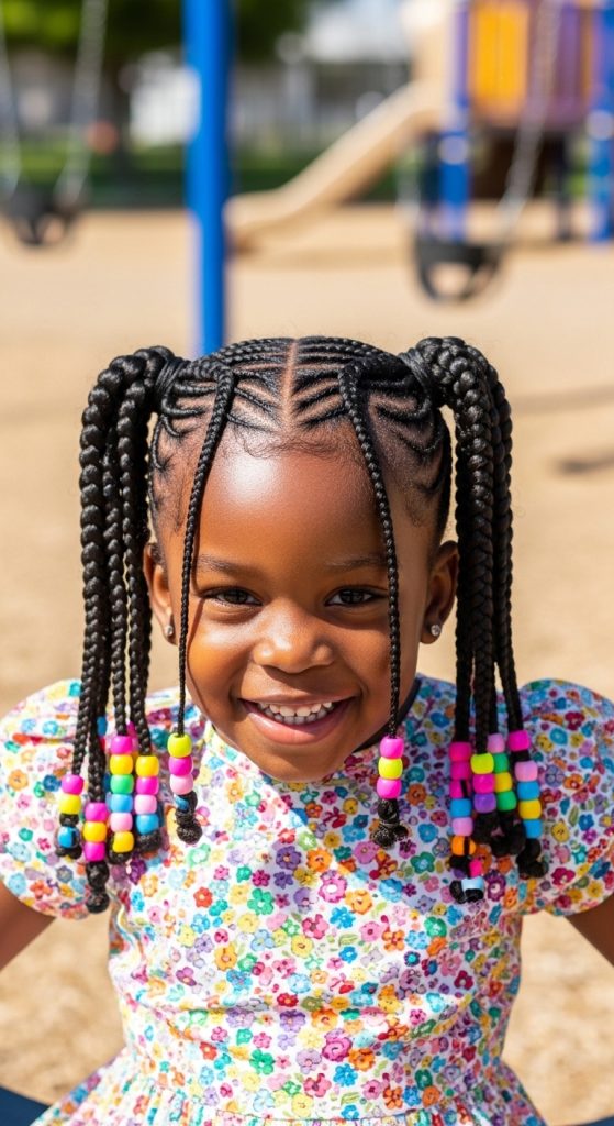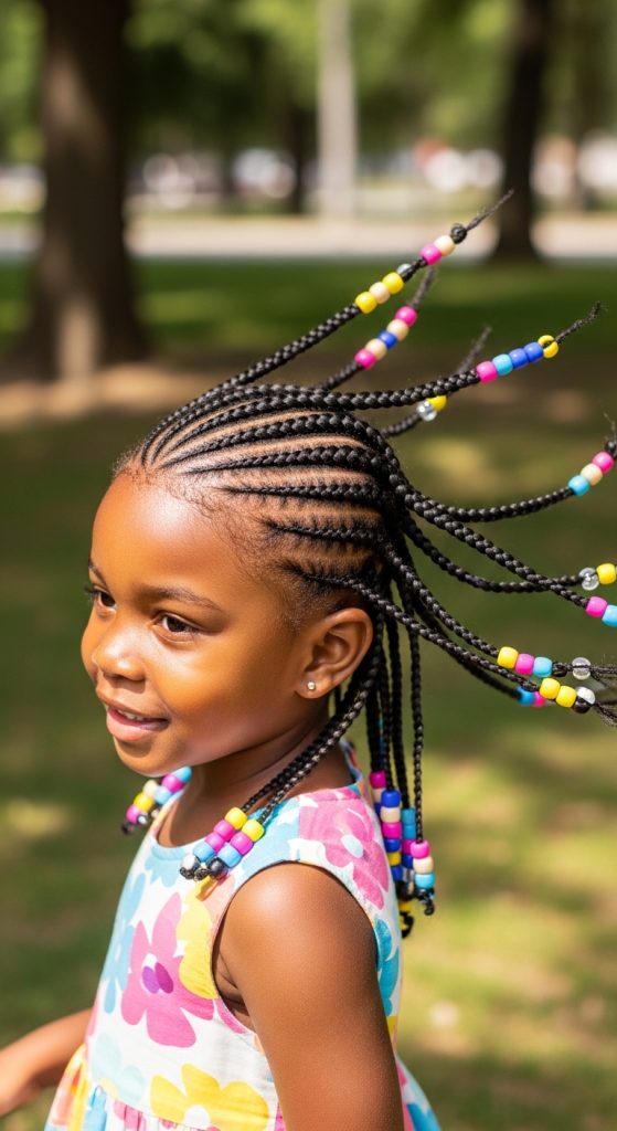 Adding beads to braided hairstyles creates a fun and playful look that many kids love.