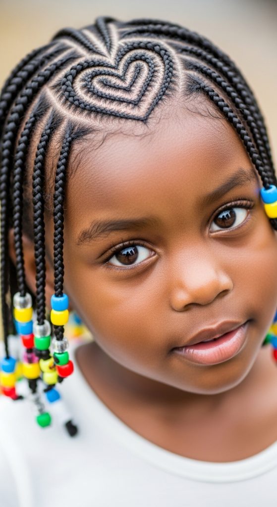 Heart-shaped cornrows create a cute and creative hairstyle that is perfect for special occasions.