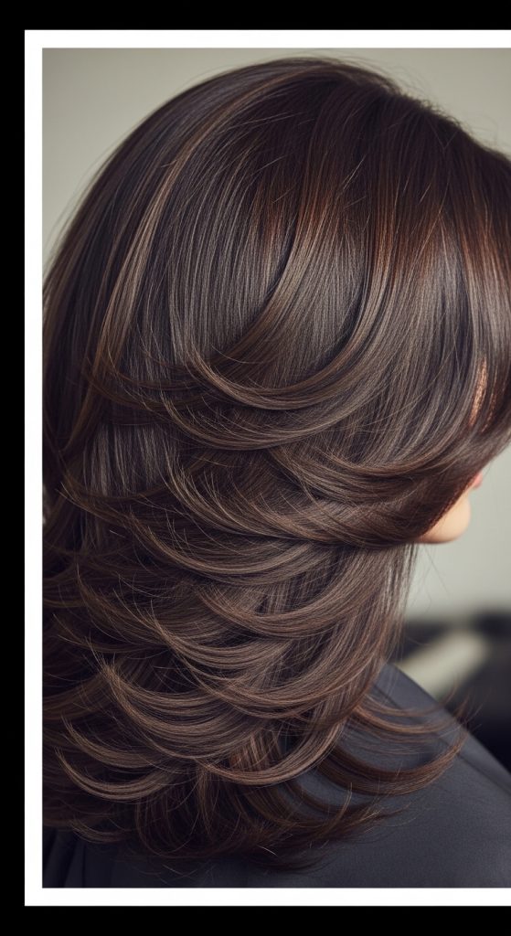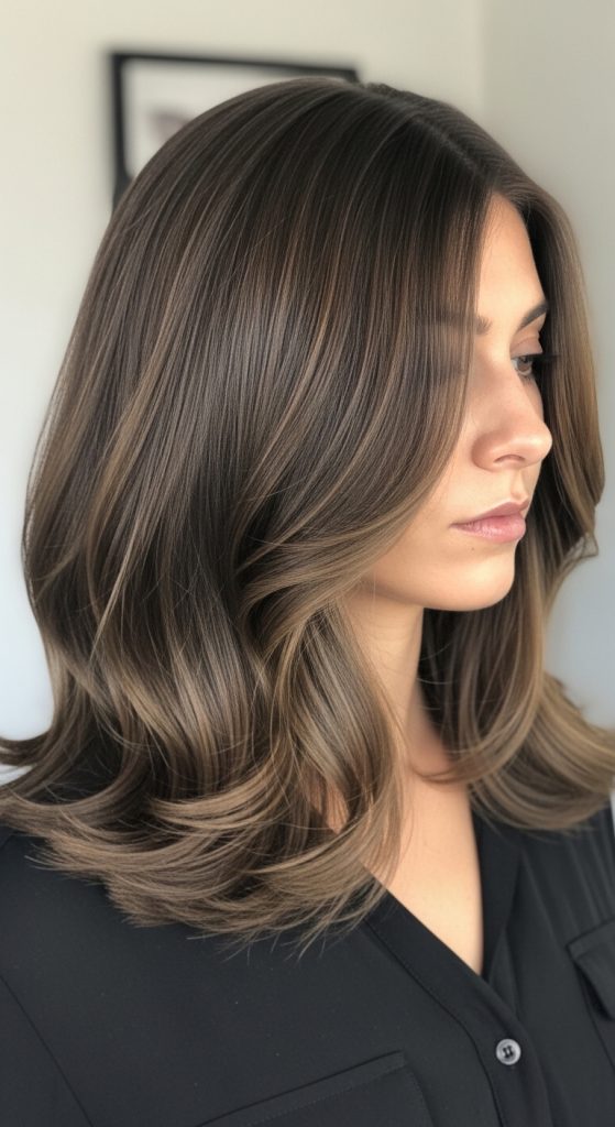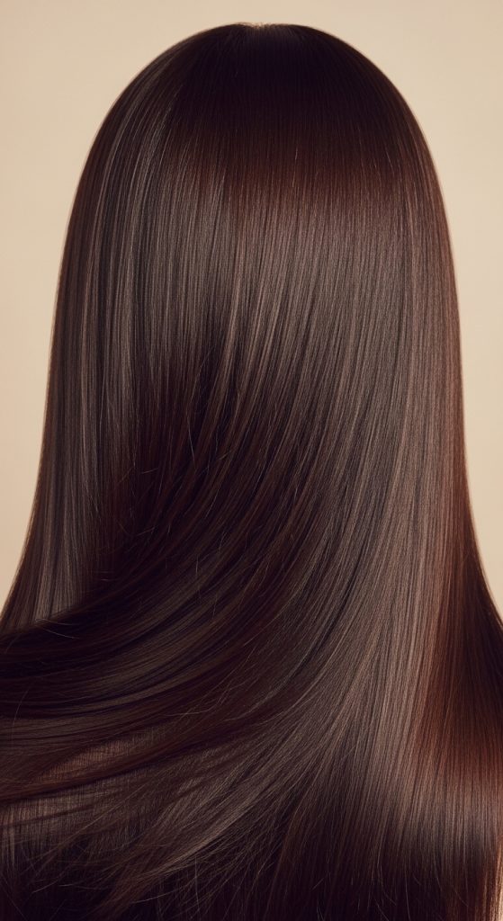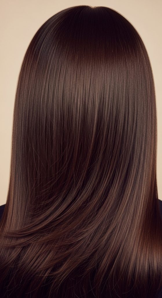 Rich chocolate brown is one of the most flattering and universally loved brown hair shades. It’s deep, glossy, and warm without appearing too red or too dark. This shade adds instant richness and shine, making hair look healthy and luxurious. If you want a polished, elegant update without going lighter or dramatically darker, chocolate brown is a perfect choice.