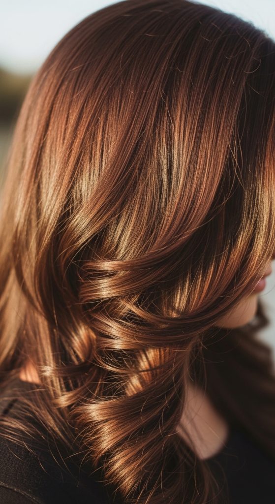 Cinnamon brown introduces a soft reddish warmth to brown hair. It adds vibrancy without looking overly red.