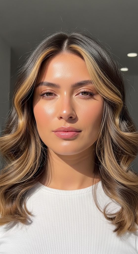 The warm honey tones complement brunette hair beautifully, adding contrast without looking too bold. It’s a great option for those who want a subtle change that still feels noticeable and stylish. These highlights can also make your face appear more lifted and radiant.