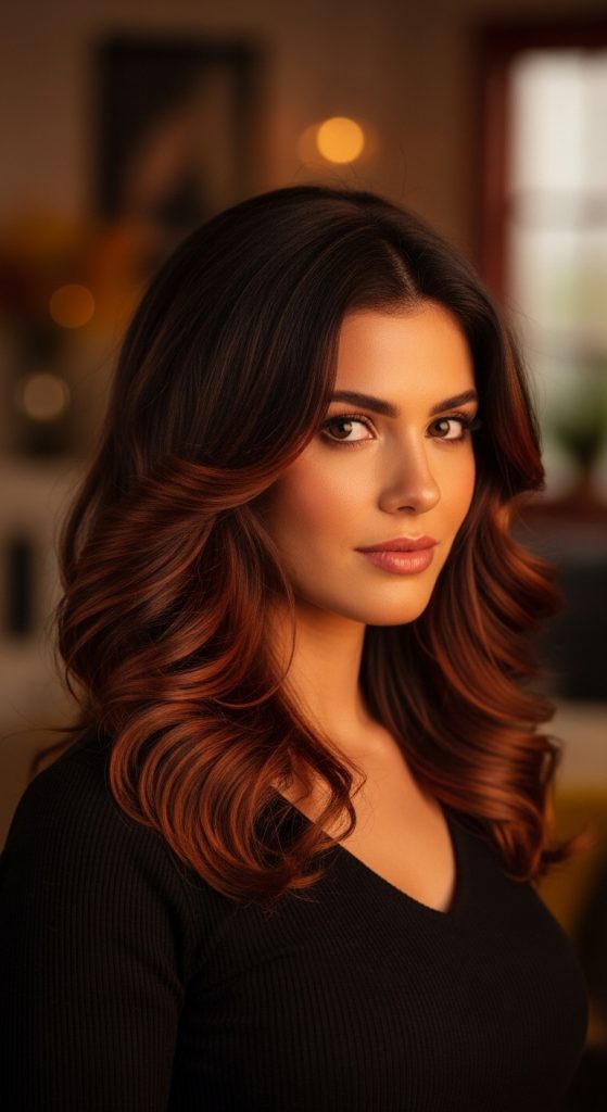 Auburn highlights add a rich reddish tone that enhances warmth and creates a bold yet elegant look.