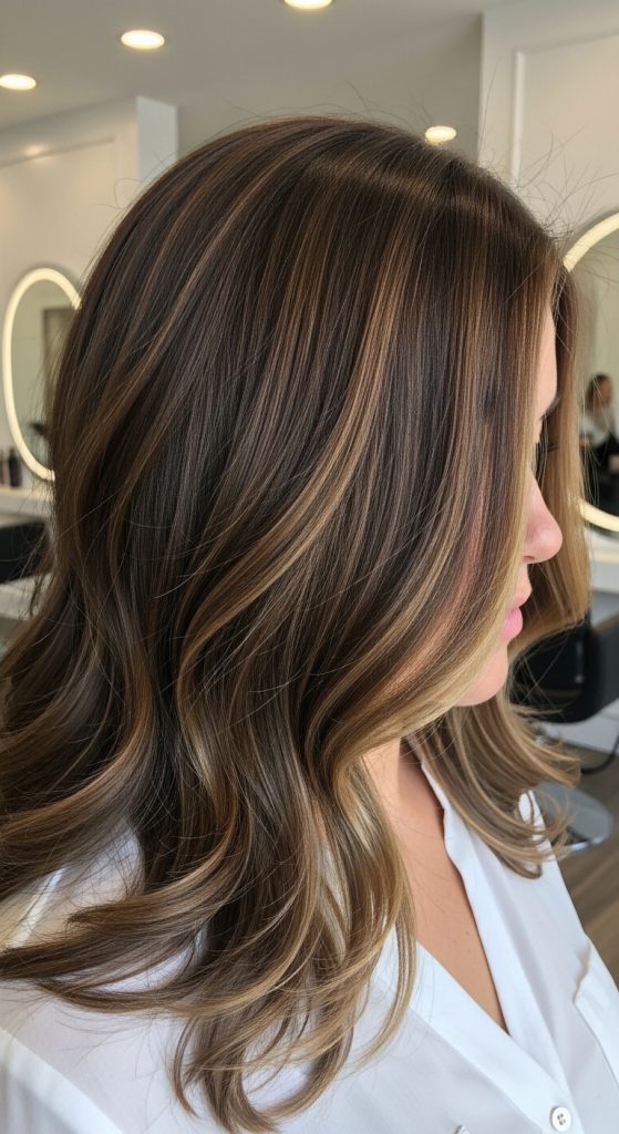 Ash brown highlights are ideal for brunettes who prefer a cooler, more muted aesthetic. Unlike warm tones, ash highlights neutralize red or orange undertones, creating a sleek and modern finish. This look is especially popular among those who want a sophisticated, understated style.