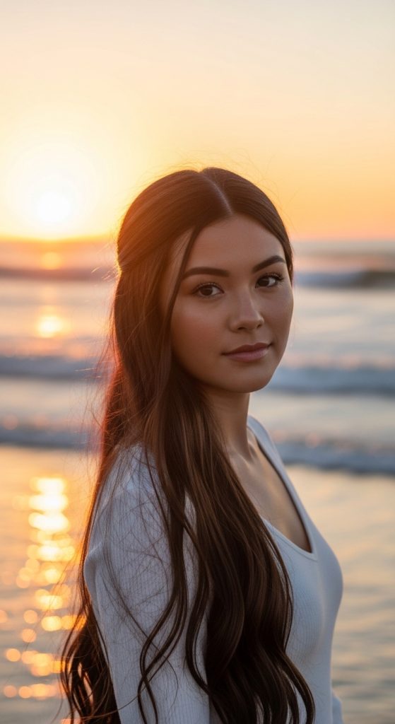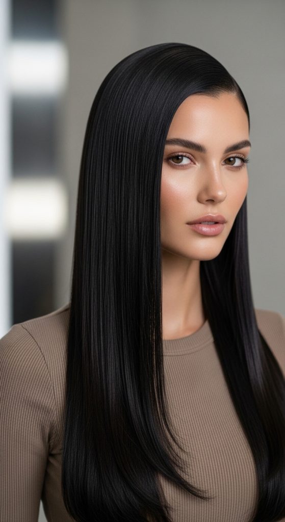 Long, straight hair looks effortlessly polished and minimal.