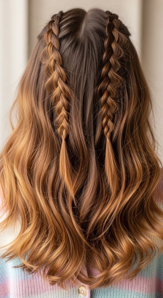 Two small front braids add subtle detail to loose long hair.