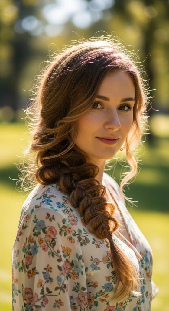 A loose side braid is timeless and flattering for long hair. It highlights the length beautifully while keeping hair controlled.