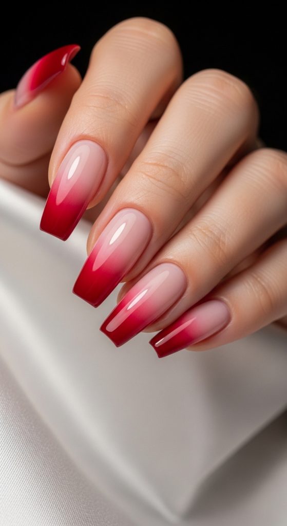 A soft gradient from pink to red creates a romantic and dreamy effect.