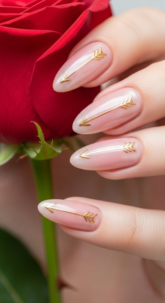 Add tiny gold or white cupid arrows across a soft pink base for a cute romantic vibe.