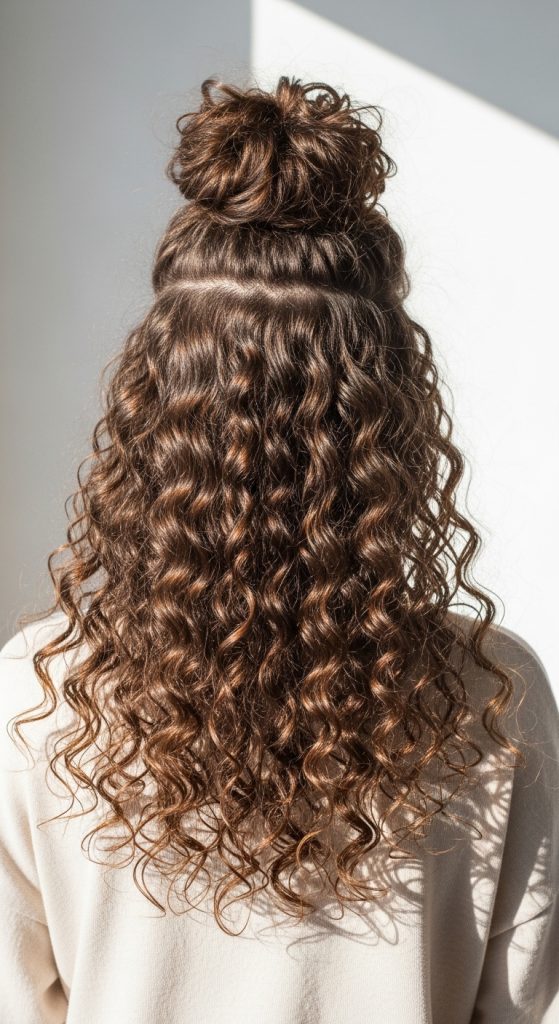 Half-up half-down styles also work beautifully across different curl patterns and lengths. Whether you have loose waves, defined ringlets, or tight coils, these styles can be adapted to your texture. They are forgiving, customizable, and beginner-friendly—perfect for anyone still learning how to style curly hair confidently.