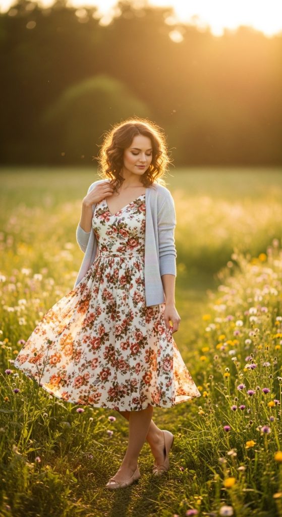 4. Casual Floral Sundress with Cardigan