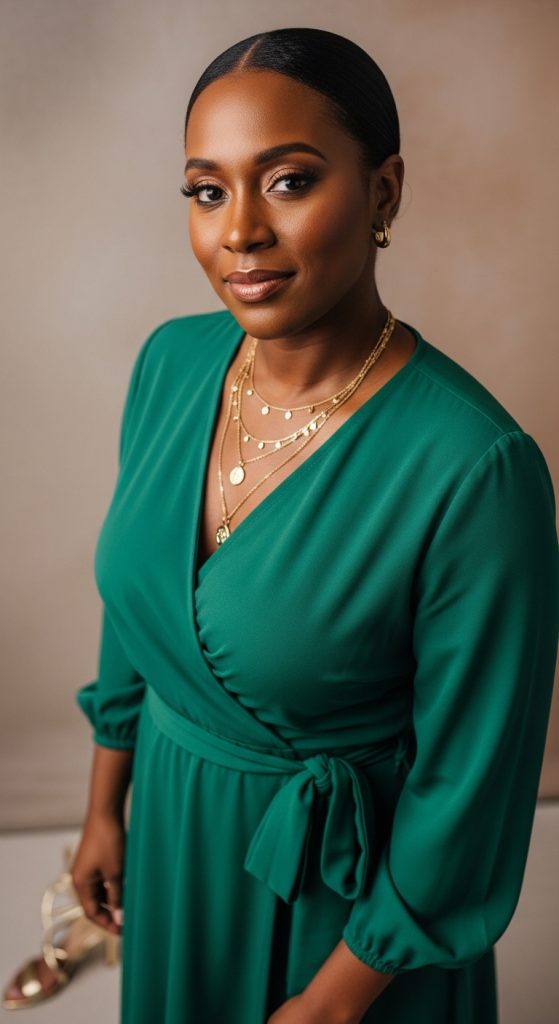 - Jewel-tone wrap dress