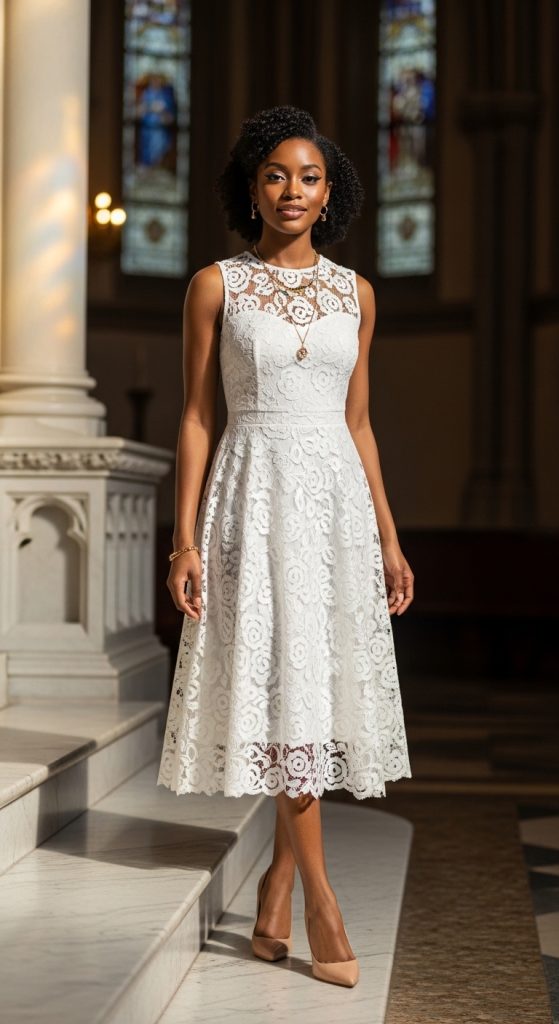 This look is ideal for women who want to stand out while keeping it classy and church-appropriate.
