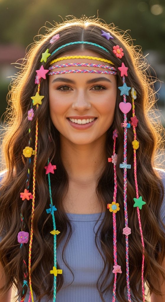 Adding clips, barrettes, headbands, or scarves instantly transforms long hair. Accessories add color, charm, and uniqueness without complex styling. Perfect for everyday wear or special occasions.