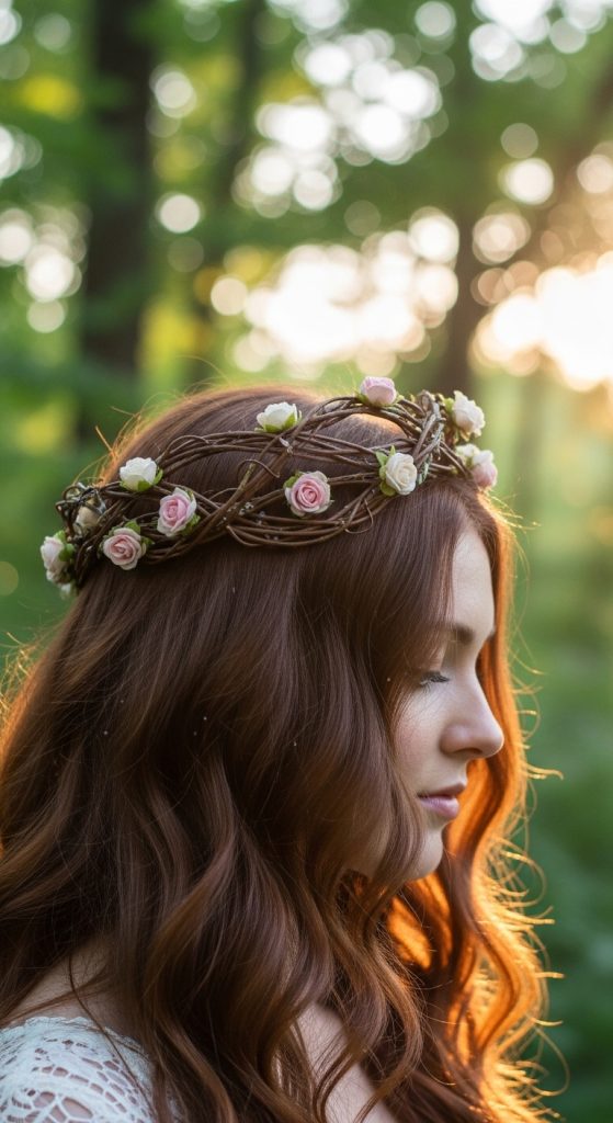 Create a twisted crown by twisting strands along the front and pinning them at the back. This style is romantic, elegant, and keeps hair neat while adding a stylish touch.