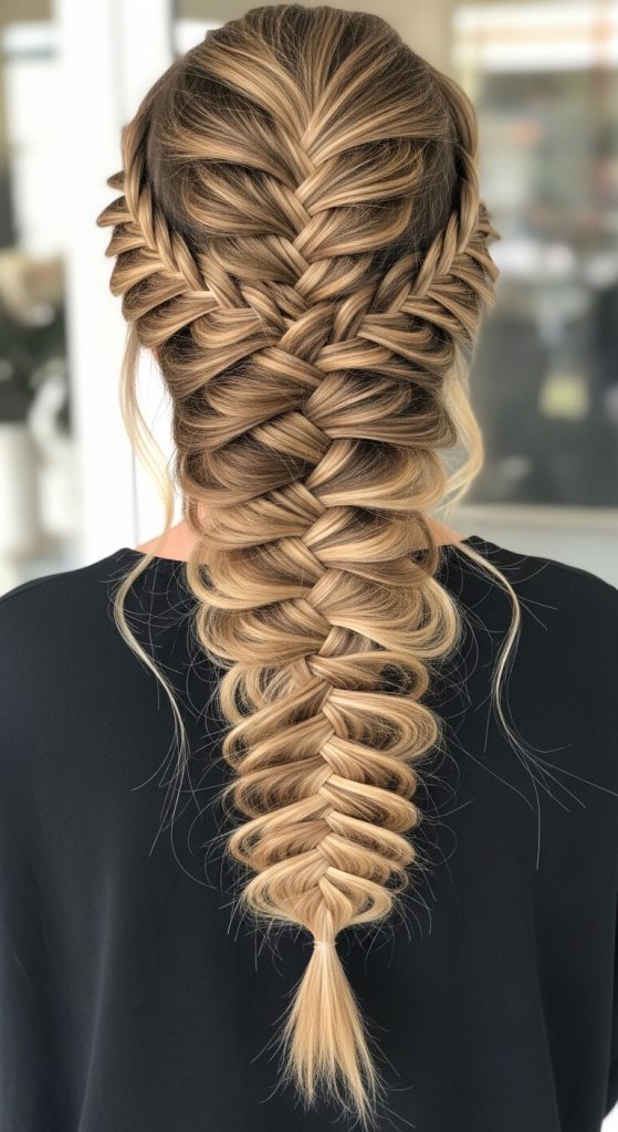 A fishtail braid is intricate yet surprisingly easy on long hair. It adds texture and visual interest. Start loosely and pull gently for a fuller, relaxed look.