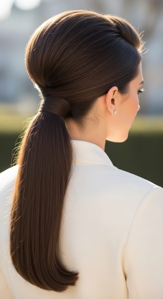 A low ponytail with volume adds sophistication. Tease the crown slightly before pulling hair back and securing at the nape. Perfect for office, parties, or casual outings.