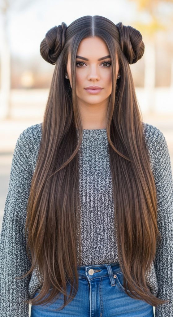 Another common challenge with thick hair is comfort. Tight ponytails can feel heavy. Loose styles can expand throughout the day. The solution lies in smart sectioning, strong elastics, and strategic layering within the hairstyle. Many easy hairstyles for thick hair focus on dividing the weight — like double braids or low buns — which reduces scalp tension and keeps styles secure longer.