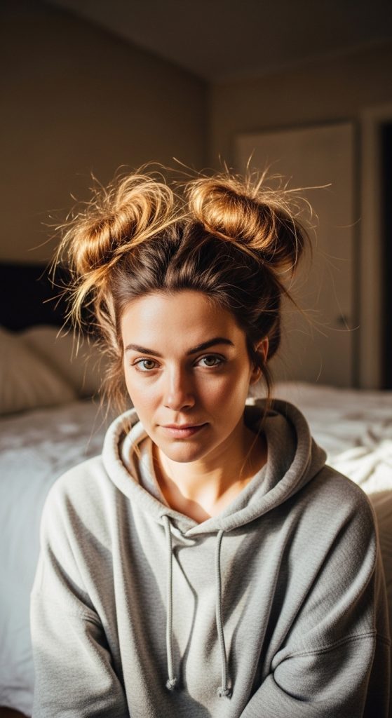 Messy two buns are effortless, relaxed, and perfect for everyday wear. They embrace imperfection and natural texture.