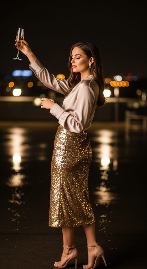 This hairstyle frames the face beautifully and photographs exceptionally well. It creates a soft, romantic silhouette while still looking sophisticated. If you want glamour without the complexity of an updo, this is a perfect choice.