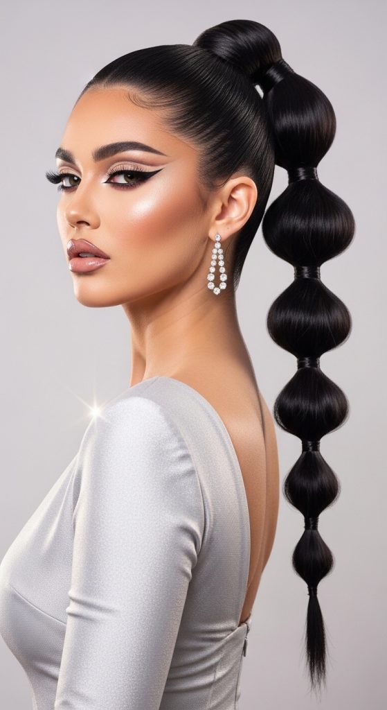 The bubble ponytail is trendy, fun, and eye-catching. It’s perfect if you want something different.