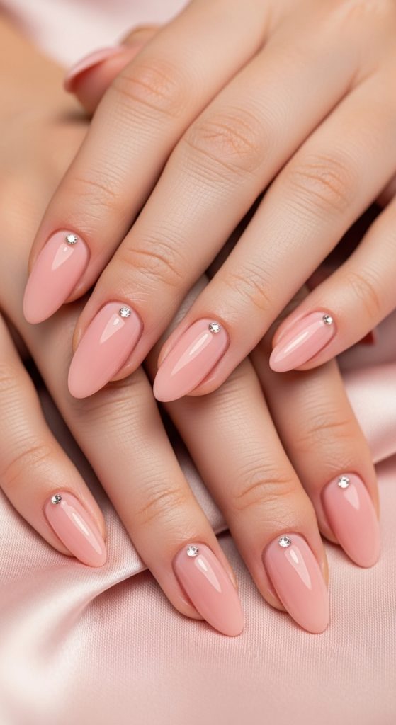 7. Blush Nails with Tiny Diamond-Inspired Crystals