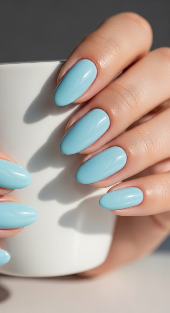Baby blue glossy nails are soft, clean, and effortlessly pretty. This style works for everyday wear and pairs beautifully with spring and summer outfits. It’s simple yet eye-catching thanks to its smooth high-shine finish.