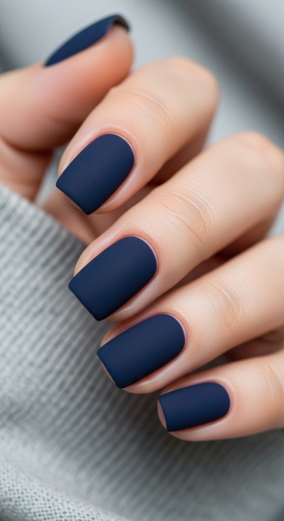 Matte navy nails look sophisticated and bold.