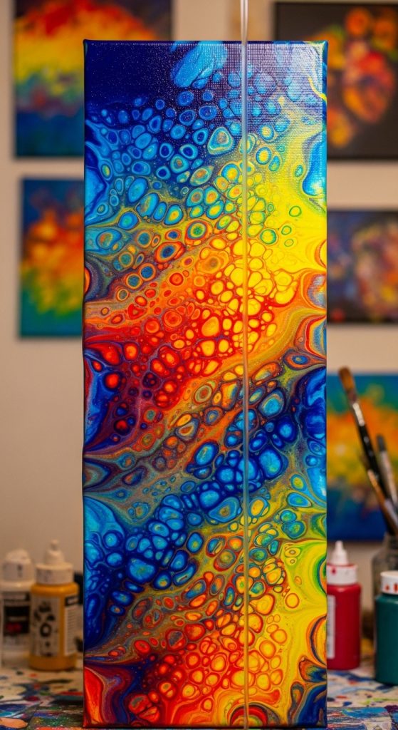 Pour painting is a unique acrylic painting technique that creates stunning abstract effects without detailed brushwork. It involves pouring fluid paint onto a canvas and tilting it to create organic patterns.