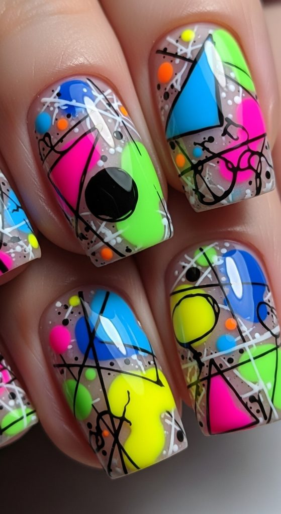 Abstract funky nails are perfect for those who love creative freedom. There are no rules, making each manicure truly unique.