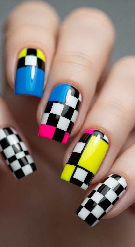 5. Funky Checkerboard Nails