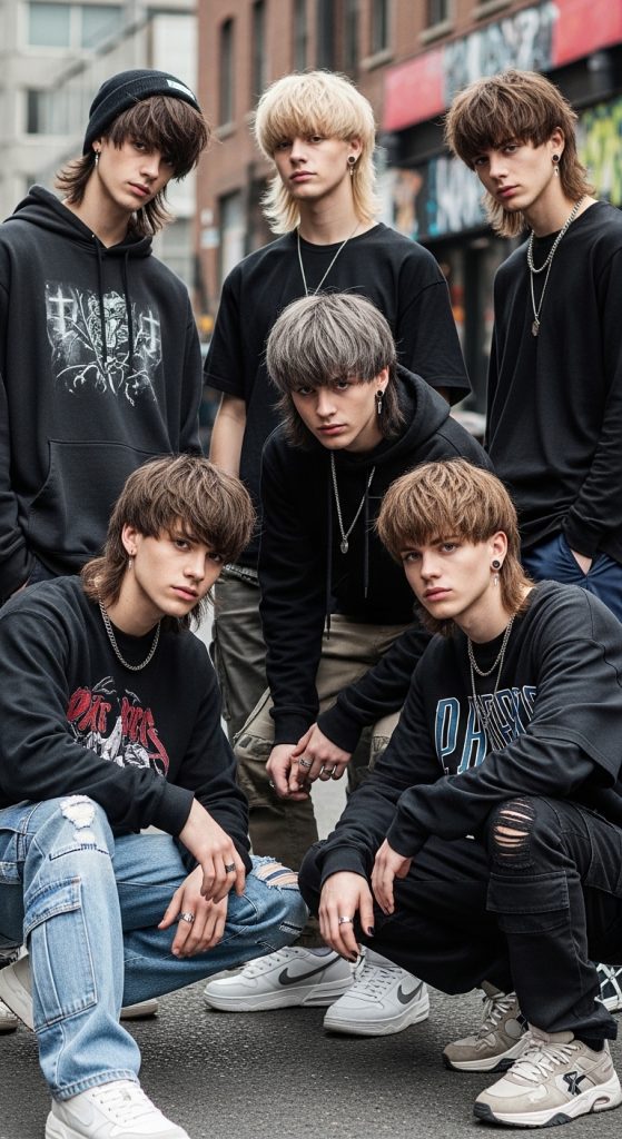 The wolf cut is a mix of shag and mullet, giving a bold and trendy look. It’s popular among Gen Z boys.