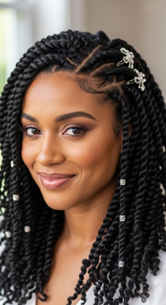 Finish with accessories like beads, bows, or clips to make the hairstyle fun and playful.