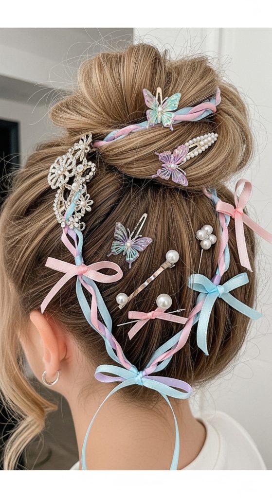 Use hair accessories like clips, pins, combs, or ribbons to elevate any up hairstyle. Even a simple bun or ponytail can look stylish and unique with the right accessory.