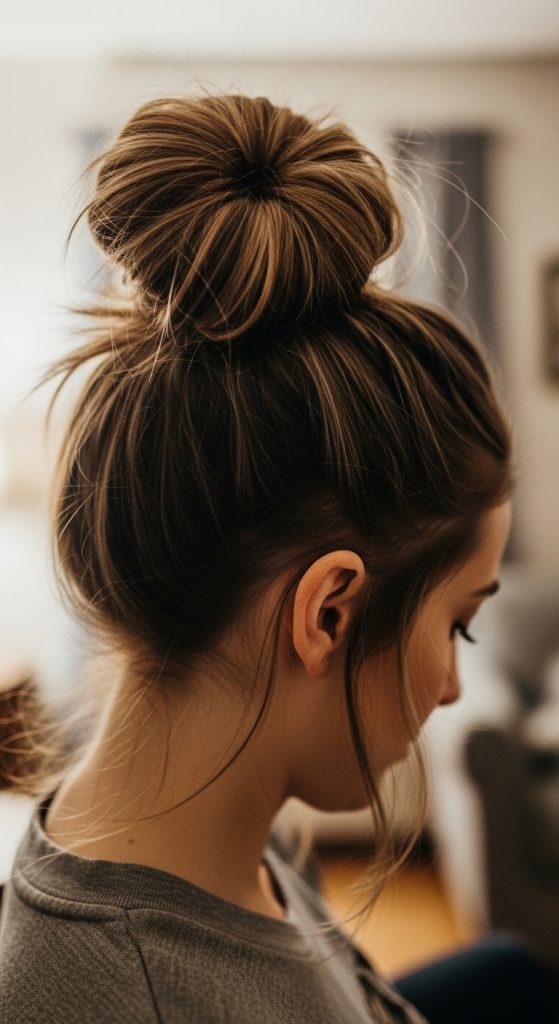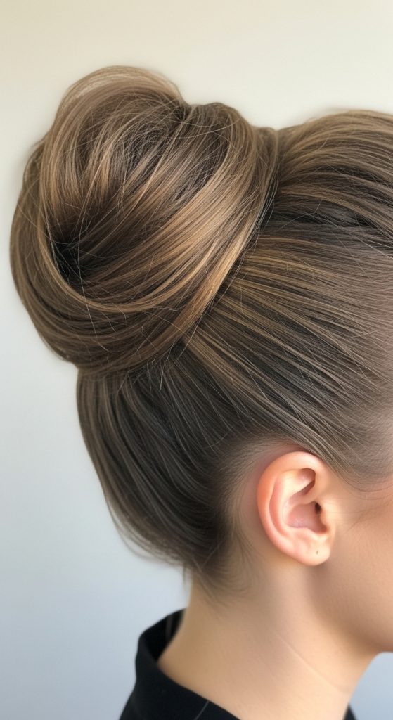 SEO Keywords: high bun hairstyle, easy updos, classic hair up style.