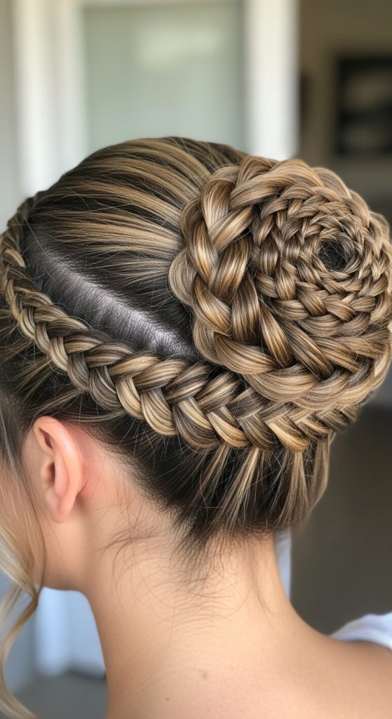 A braided bun combines braids and a bun for a stylish, textured look. Braid sections of your hair first, then wrap into a bun. Works for medium to long hair and adds detail and elegance.