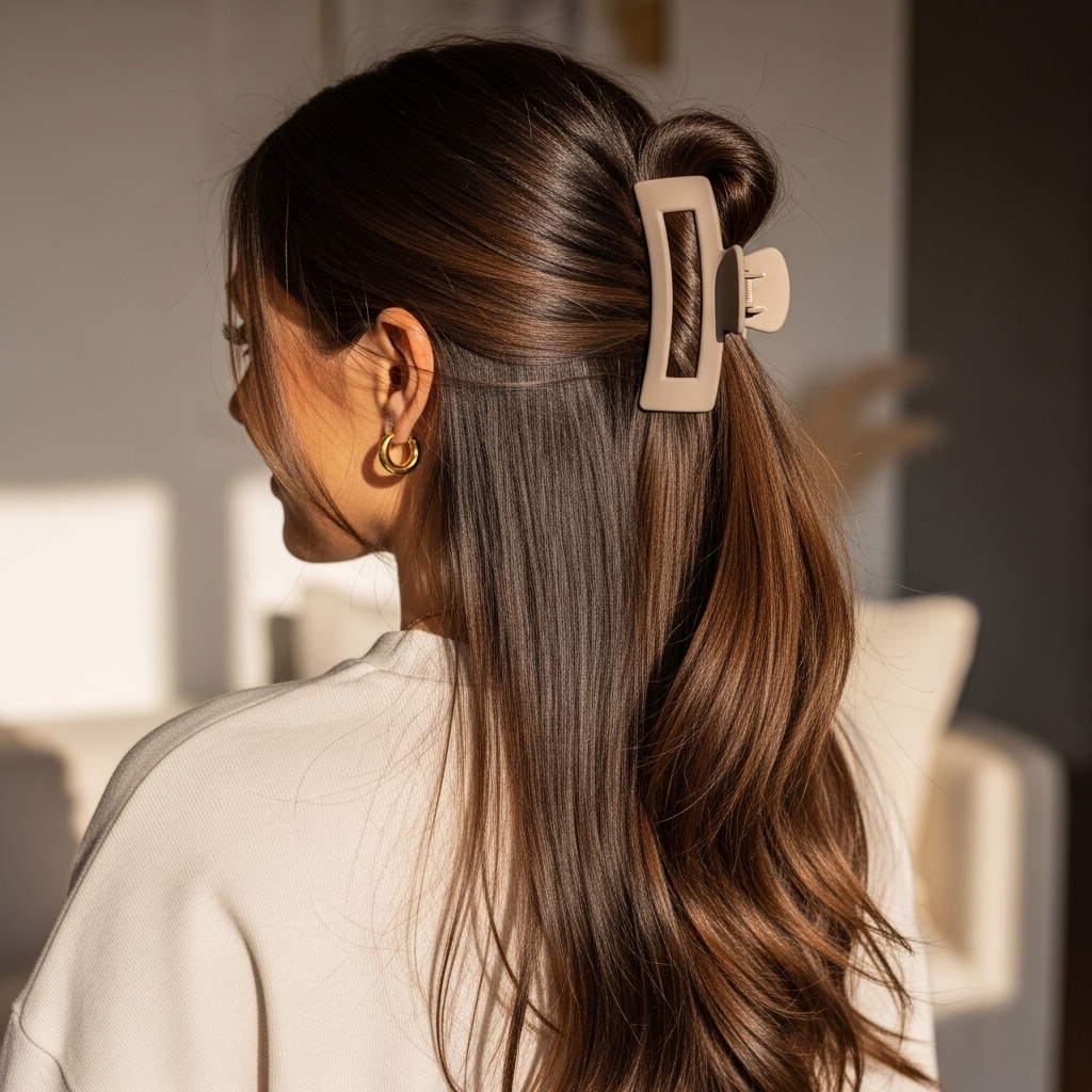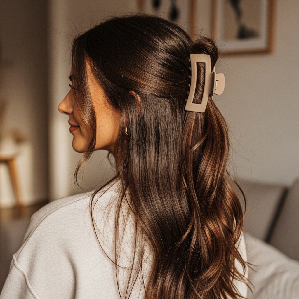The claw clip twist is effortless yet stylish. It’s trending heavily for everyday chic looks.