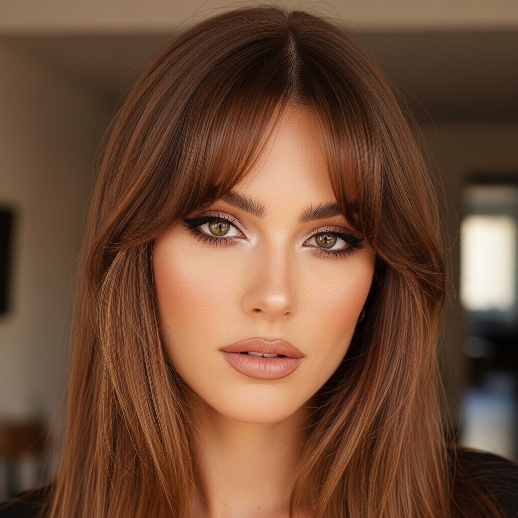 Curtain bangs soften long straight hair and frame the face beautifully. They add dimension without drastically changing length.