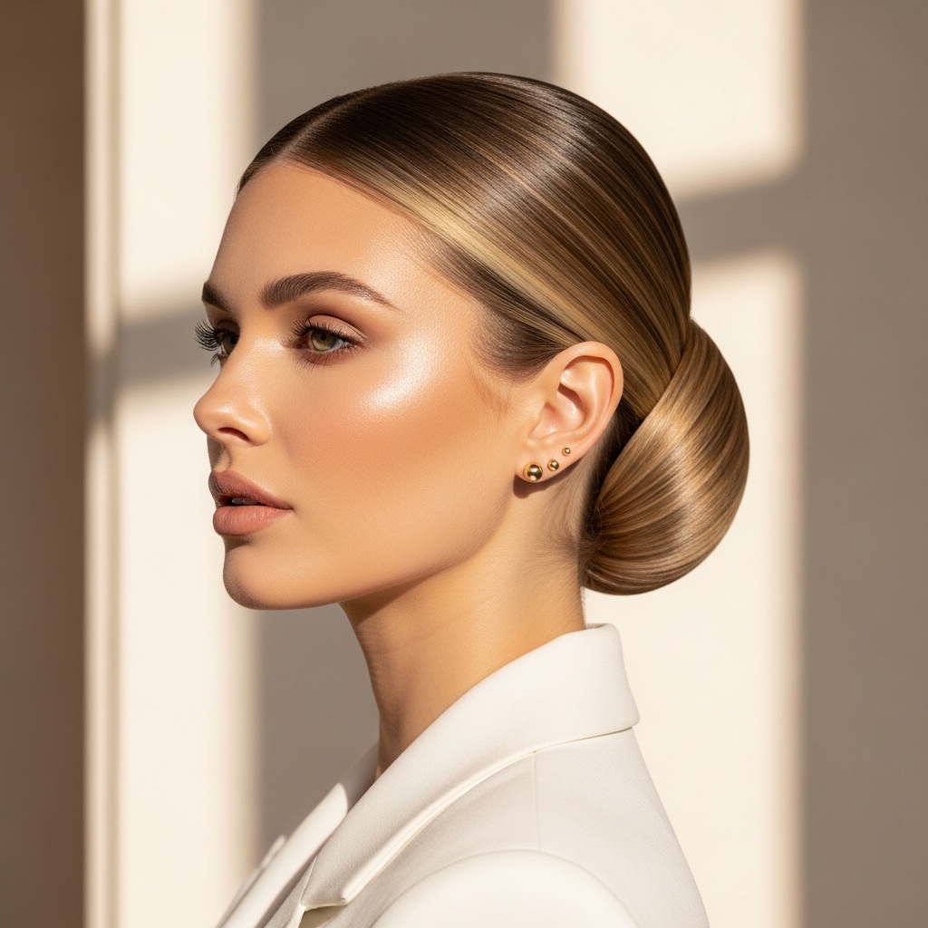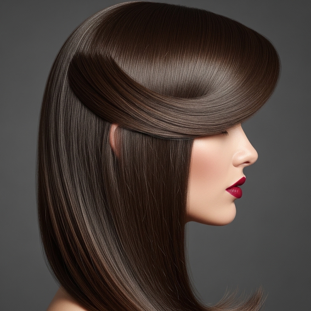 The key to this look is precision. Every strand should lie flat and polished, creating a sharp, symmetrical appearance. This hairstyle highlights facial features and works especially well with bold makeup or statement earrings.