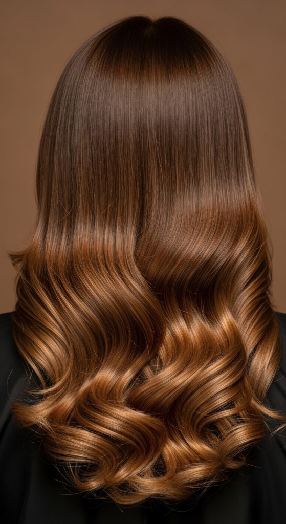 This style keeps roots sleek and smooth while curls start from mid-lengths down. Itโs flattering and elongates the face.