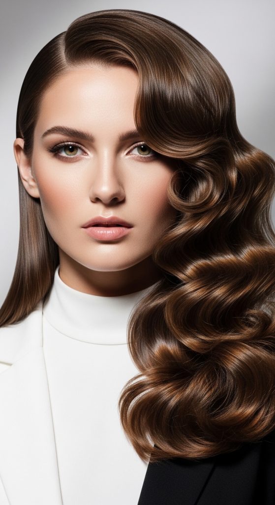 This idea features straight hair on one side of the head and curls on the other, divided by a clean middle part. It creates a bold, editorial look that stands out instantly.