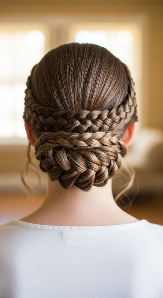 Another trend is the clean glam style, where braids are tight, sleek, and perfectly structured. The bun is polished and smooth, often decorated with pearl or crystal pins for a luxury finish.