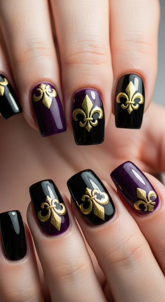 5. Fleur-de-Lis Mardi Gras Nails
