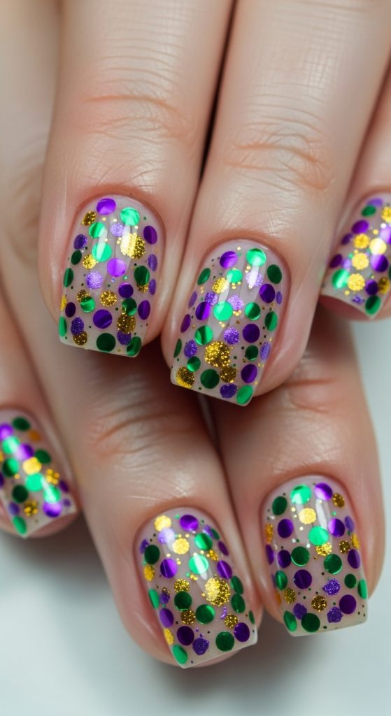 7. Mardi Gras Confetti Nails
