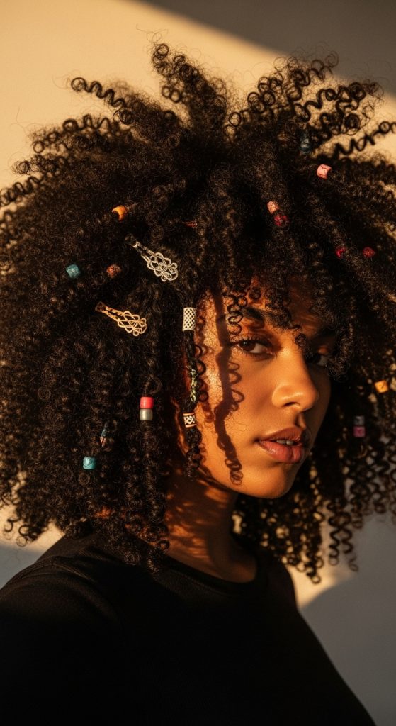 10. Accessorized Afro with Clips or Beads
