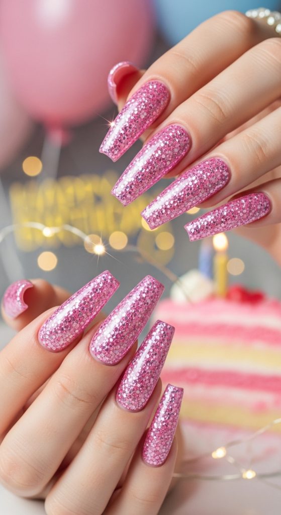 1. Pink Glitter Birthday Nails