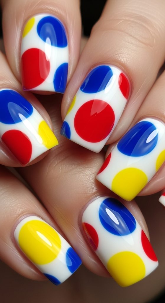 Bold oversized poka dots nails are playful and retro-inspired. This design is perfect for those who love statement nail art.