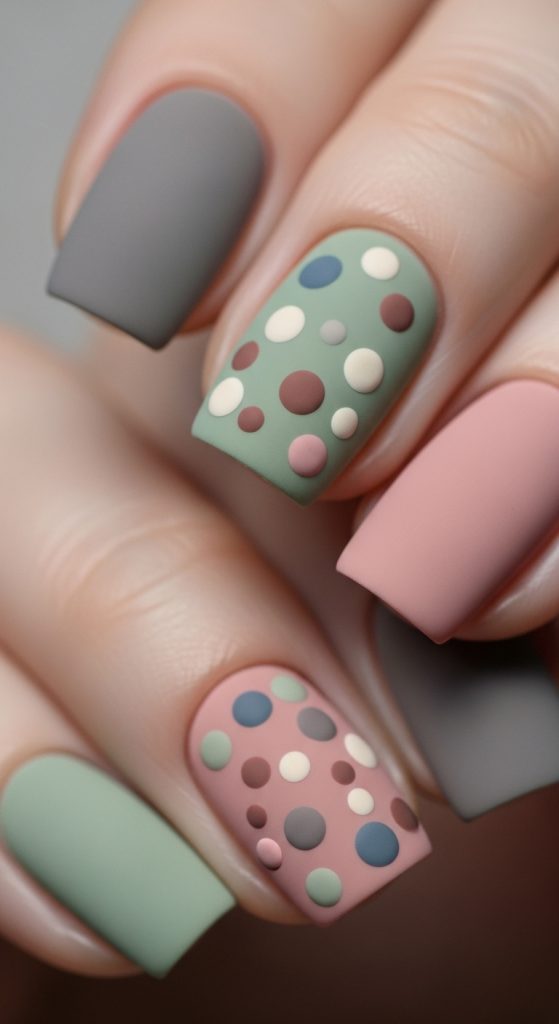 This design uses matte base colors paired with glossy or matte dots for contrast.